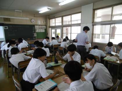 授業のねらいは「1次関数の変化の割合を全員が求めることができる」でした。4人班をうまく活用して、授業のねらいは達成できたようです。
