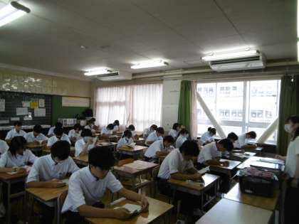 1学期も残りあと3日になりましたが、住中生は今日もやるべきことを、当たり前の行動をしっかり行っていました。感心します。写真は今朝の読書の様子です。上から3年1組、2年3組、1年3組です。