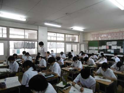 夏休みに宿題にとりかかっていました。時間を無駄にせず、自分の立てた目標に向かって勉強する76期生の態度はさすがでした。