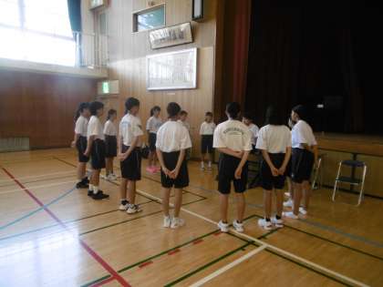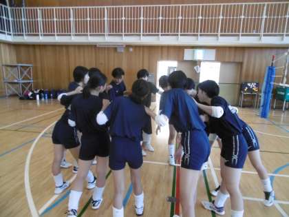 体育館でバレー部、女子バスケットボール部が朝練を行っていました。両部とも練習前にミーティングを行い、練習メニューや今の課題、これからやるべきことなどを確認し、練習に入っていました。