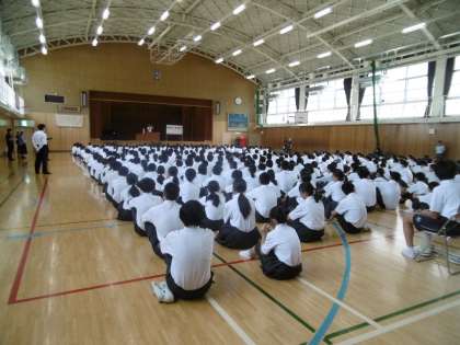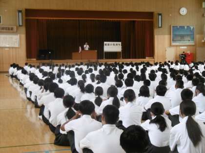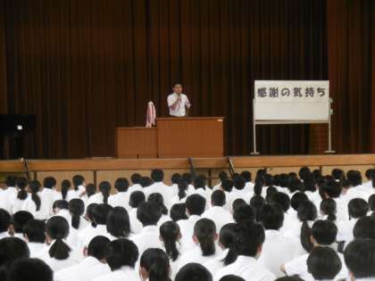 今日も時間通りに朝礼が始まりました。8時30分前には集合が完了していました。校長からは、「感謝の気持ちを常にもつことでさらに自分の成長につなげていこう」という話をしました。