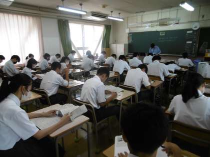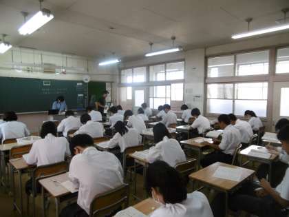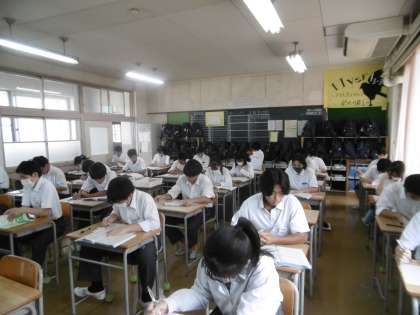 単元テストを静かに行っていました。3年生の緊張感が教室から伝わってくるほどでした。3年生の次回の実力テストは10月6日(金)、中間テストは10月12日(木)、13日(金)の予定です。