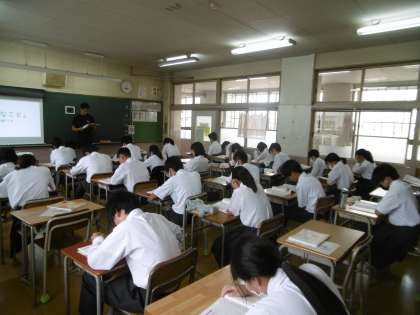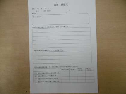写真は2年3組と2年4組で行われた副担任による道徳の授業です。住道中学校では、全学年で全教員によるローテーション道徳を行っています。授業後には、全校で統一している様式による振り返りを行っています。各クラスの教材名は以下のとおりです。
