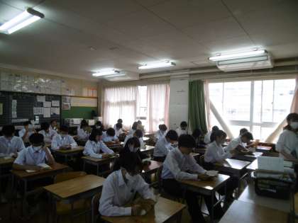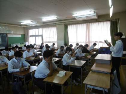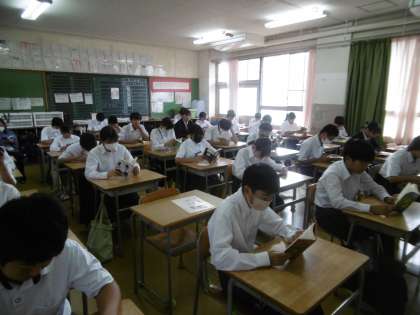 写真は上から、2年1組、2年3組、2年4組です。朝の10分間の静寂は今日も継続中です。76期生は姿勢を正して、読書ができています。