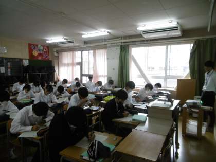 中間テスト前のため、テスト対策プリントを各自で黙々と行っていました。3年生はこれから受けるテストはすべて進路を決定する上で大切なテストとなります。
