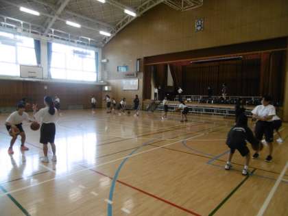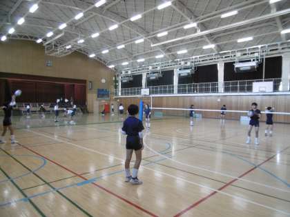 写真は上から、女子バスケットボール部、バレー部です。今日もがんばっていました。感心します。