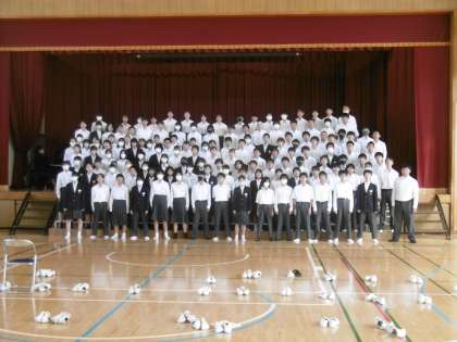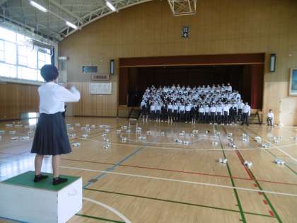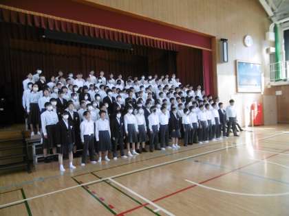 1時間目に体育館で行われた1年生(77期生)の合唱練習の様子です。今日初めて歌った学年合唱は圧巻で、本当に見事でした。声量や表現、歌う意気込みにも驚きました。きっと来週の本番で披露する学年合唱でたくさんの人を感動させるでしょう。77期生の「団結」に期待しています。