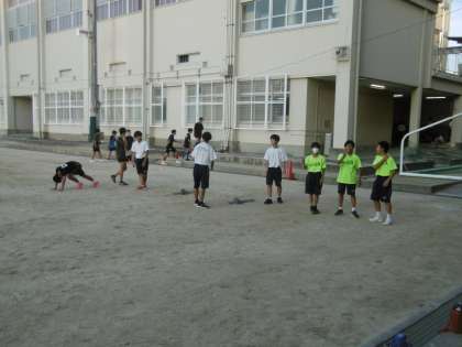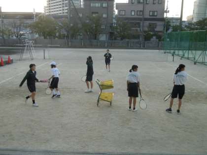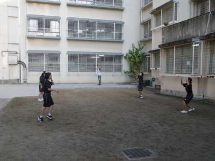放課後の部活動の様子です。過ごしやすい気温の中、子どもたちは一生懸命に練習をしていました。写真は上から、バレー部、陸上部、女子テニス部です。