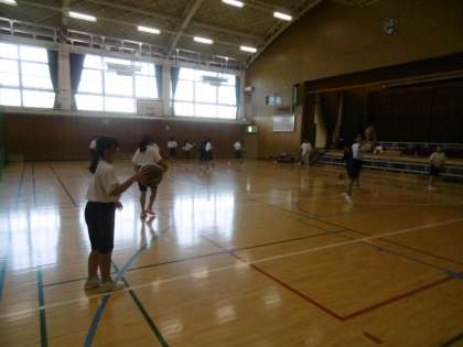 写真は上から、女子バスケットボール部、バレー部、ラグビー部です。爽やかな天気と気温の中、子どもたちは今日もがんばっていました。