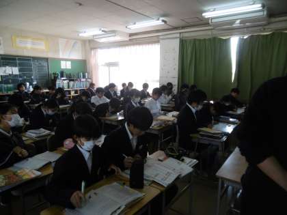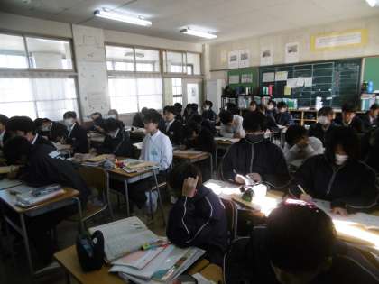 期末テストまで、あと6日となりました。計画的に勉強を進めましょう。教室は試験前の雰囲気の中、授業が行われていました。