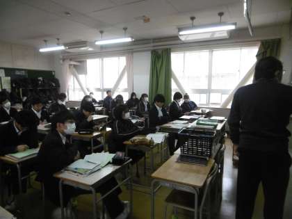 公民分野の「日本銀行及び金融政策」が学習内容でした。とても静かに教科担当の先生の話を静かに聞くことができていました。