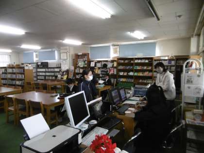 本を読みに来ている生徒や図書委員としての仕事をしている生徒がいました。図書館はいつも穏やかな雰囲気の中、ゆったりとした時間が流れています。芸術・博物館コーナーが新設されていました。