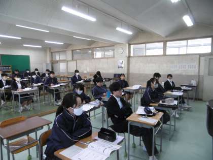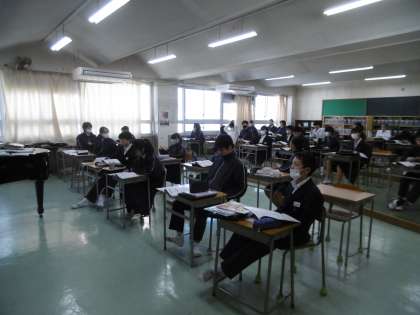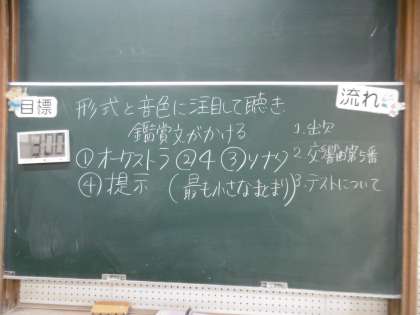 ベートーベンの運命(交響曲第5番)を聞きながら、教科担当の先生からの質問を生徒は一生懸命に答えていました。授業のねらいは「形式と音色に注目して聴き、鑑賞文が書ける」でした。