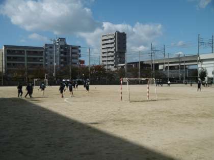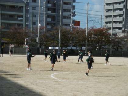 晴天の中、グラウンドでハンドボールをグループに分かれて行っていました。寒い中でしたが、生徒たちは元気いっぱいに活動していました。やはり、子どもは元気です。