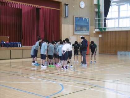 写真は上から、男子バスケットボール部、バレー部です。男子バスケットボール部は、週末に勝ち進んでいる北河内冬季大会を控えています。健闘を祈ります。両チームとも今日もきびきびとした練習態度でした。