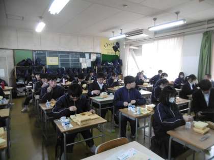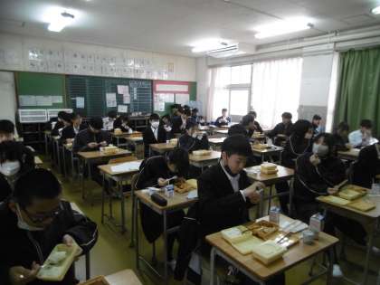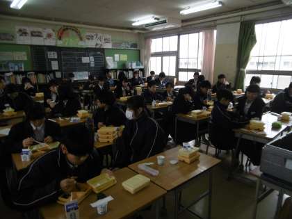 写真は上から、3年3組、2年1組、1年4組です。やはり、子どもたちにとっては、昼食の時間が一番楽しいようです。みんないい表情をしていました。