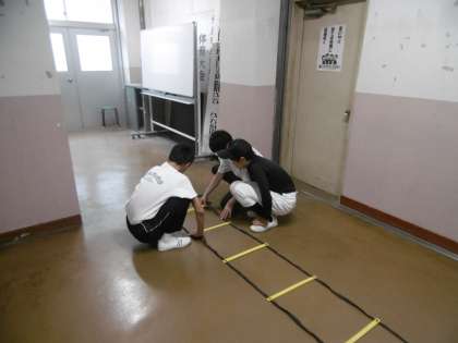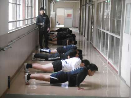 写真は上から、ラグビー部、野球部です。雨が降っていたため、今日は校内で基礎体力トレーニングを行っていました。声がよく出て、元気いっぱいの練習でした。
