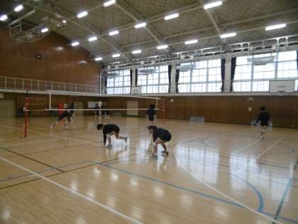 バレー部ががんばっていました。体育館の全面を使い、基礎練習を行っていました。一つひとつの練習に声を出し、鍛えているところを常に意識してトレーニングを行っていました。