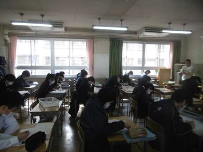 本当に静かな教室だったので、廊下から写真を撮りました。3組と同様、4組も教室の換気が完璧でした。75期生のみんなで受験を乗り切ろうとする気持ちを感じることができました。