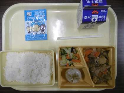 豚肉の栄養はたんぱく質とビタミンB1が多いことです。たんぱく質は皮膚や筋肉、髪の毛を作るだけでなく、体の機能を調整するホルモンの材料にもなります。また、ビタミンB1は炭水化物をエネルギーに変える時に酵素の働きを助けます。そのためビタミンB1が不足すると、酵素をエネルギーに変える働きが弱くなるため、疲労やだるさを感じやすくなります。今日の給食の豚じゃがを残さず食べて元気に過ごしましょう。