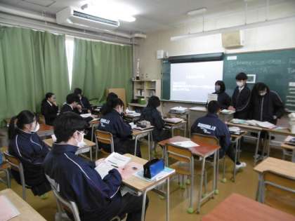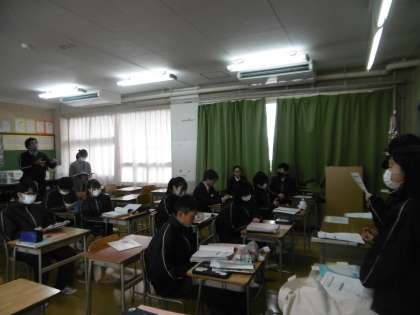 授業のめあては「落語の紹介文をジェスチャーで表現しながら読むことができる」でした。緊張しながらも、みんなの前で一生懸命に紹介文を披露していました。