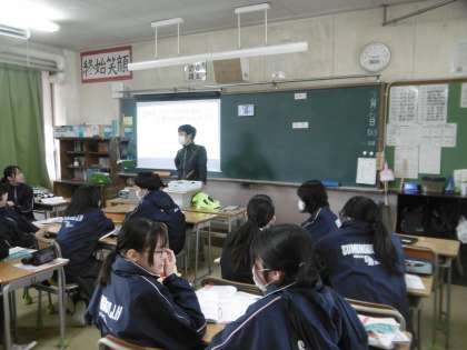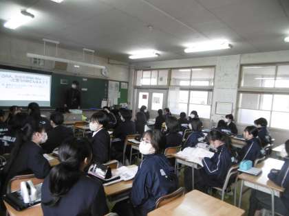 今日は男女とも保健の授業が行われていました。教科担当の先生の「この人、社会性がないな〜と思う人はどんな人?」の質問に、生徒は一生懸命に自分なりの考えを答えていました。学習内容は「自己形成と心の健康」でした。