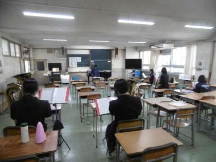 写真は上から、卓球部、吹奏楽部です。吹奏楽部は2月11日(日)9時30分より本校体育館でファミリーコンサートが行われます。その練習を一生懸命にしていました。