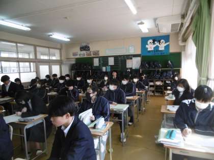 「ひたすら練習問題」のプリントが配られていました。私立高校等入試が終わり、今後は公立高校に向けての学習プリントが配られることになります。