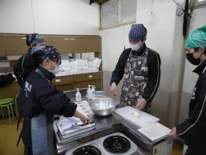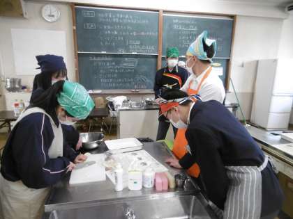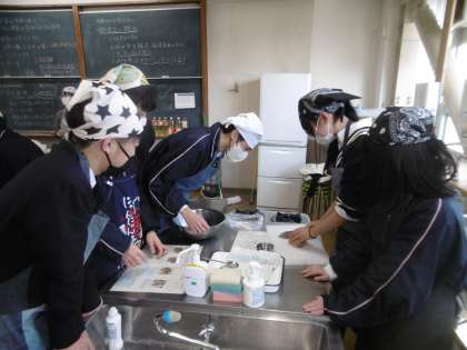 調理実習をしていました。学習のめあては「班全員が牛丼の具をおいしく、安全に作れるようになる」でした。仲が良い75期生らしく、みんなで協力しながら調理を進めていました。学習のめあては、達成できたようです。