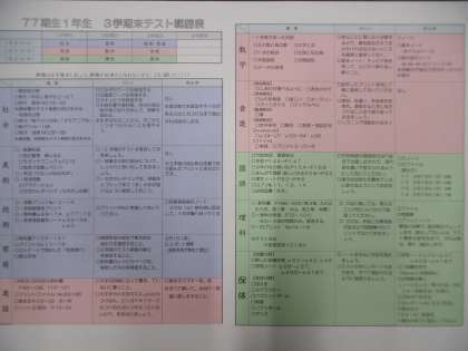 来週の20日(火)から1,2年生は学年末テストが行われます。今年度最後のテストになります。先週、すでにテスト範囲表は配られています。家庭学習を一日一日、時間を大切にしながら積み重ねましょう。