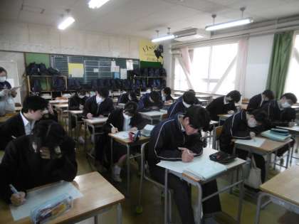 課題は「入試対策プリント」でした。3年生は体調管理にも気をつけながらの毎日の授業になっています。もう少しで受験も終わります。がんばろう!