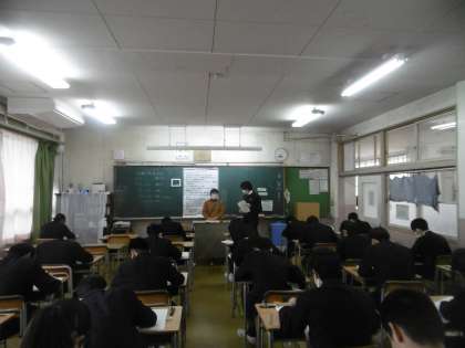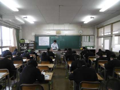 今日から3日間、1・2年生は学年末テストが行われます。今年最後のテストになります。76期生、77期生の健闘を祈ります。写真は上から、1年2組、2年1組です。