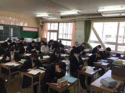3年生の数学と国語の授業です。どちらの授業でも課題に静かに取り組んでいました。数学では、教科係の生徒が指示を出していました。さすが3年生です!