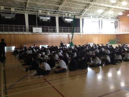 1年生は、体育館で来週行われる校外学習のオリエンテーションを行いました。2年生は、学習企画を行いました。3年生は、修学旅行のしおりとじをしていました。