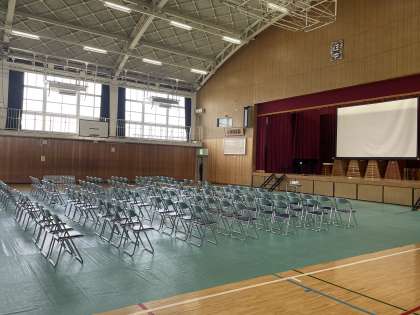 体育館では、本日教育課程説明会と進路説明会が行われます。その準備を男子バスケットボール部の生徒がとてもスムーズに準備をしてくれました。本当に感謝です。ありがとう!