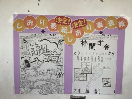 来週末に実施する林間学舎のしおり表紙のデザインが決定し、掲示されていました。