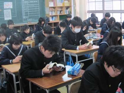 (写真は3年生・本日の「朝読」です。まさに継続は力なり。「朝読」もあと数日で す。)