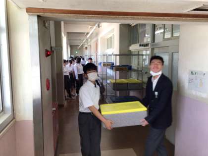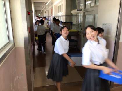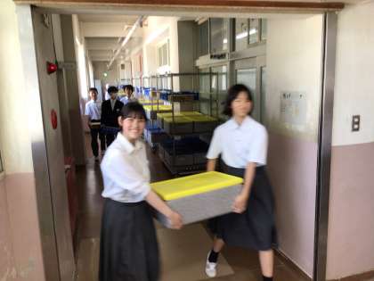 当番の人たちは、両手がふさがっているので、いつも口で「イエーイ」と言ってくれます。元気です!