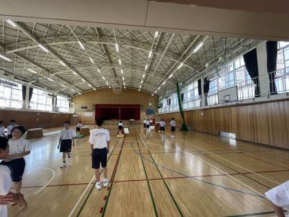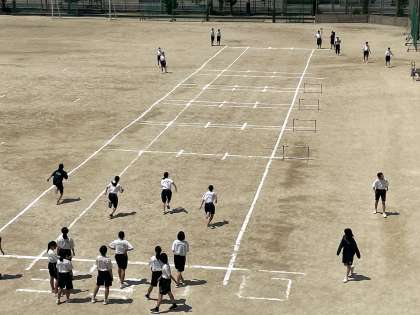 体育の様子です。女子は50m走、男子は跳び箱をしていました。