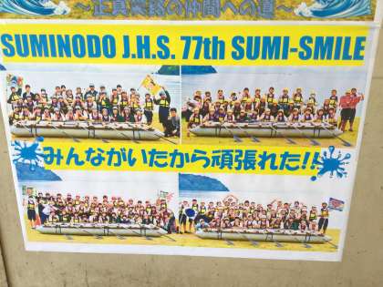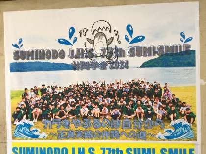 2年生のフロアには、先日実施された林間学舎の集合写真が掲示されていました。いい表情をしています。