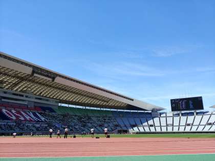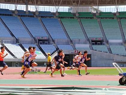 陸上部です。『第70回全日本中学校通信陸上競技 大阪大会』の二日目でした。1年・3年男子100m、3年男子200mに出場しました。