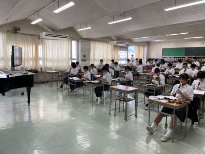 音楽と美術の様子です。美術では、夏休みの課題の説明がありました。