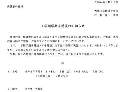明日から、学期末懇談(三者懇談)が行われます。