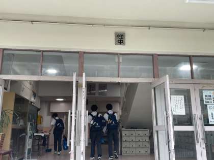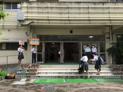 毎日、生徒会役員の生徒が挨拶運動をしてくれています。また先日、お知らせできなかった、校章のプレートを紹介しておきます。