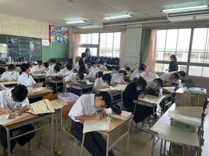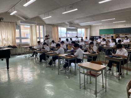 英語・数学・音楽の様子です。英語では、夏休みの課題の説明がありました。