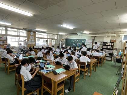 国語と理科の様子です。理科では、図書館を利用して調べ学習をしていました。