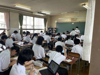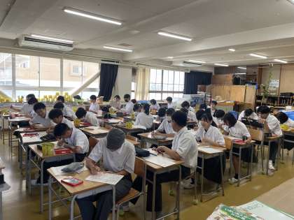 国語と美術の様子です。国語では、暑中見舞いの説明がされていました。