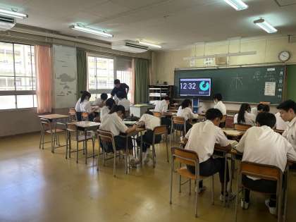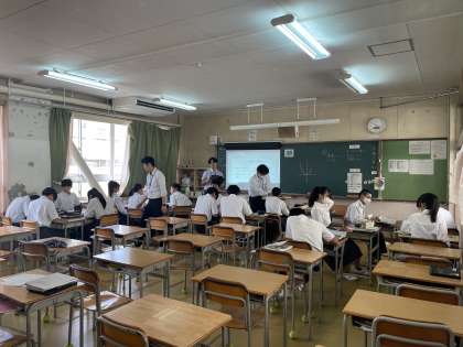 数学の様子です。分割授業を実施しています。実習生が授業をしていました。