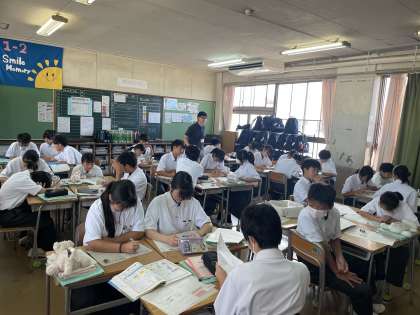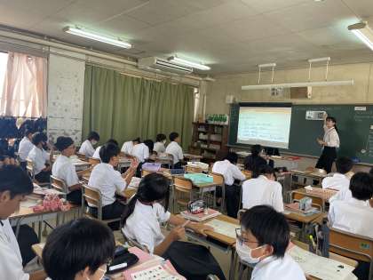 英語・理科・数学の様子です。英語では、実習生の先生の授業が行われていました。