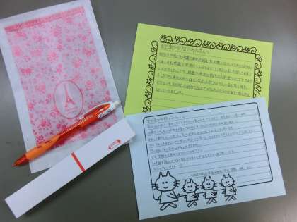 自分たちに出来ることをしようと、釜石東中学校に手紙を書き、募金を行ってシャーペンを送ることになりました。